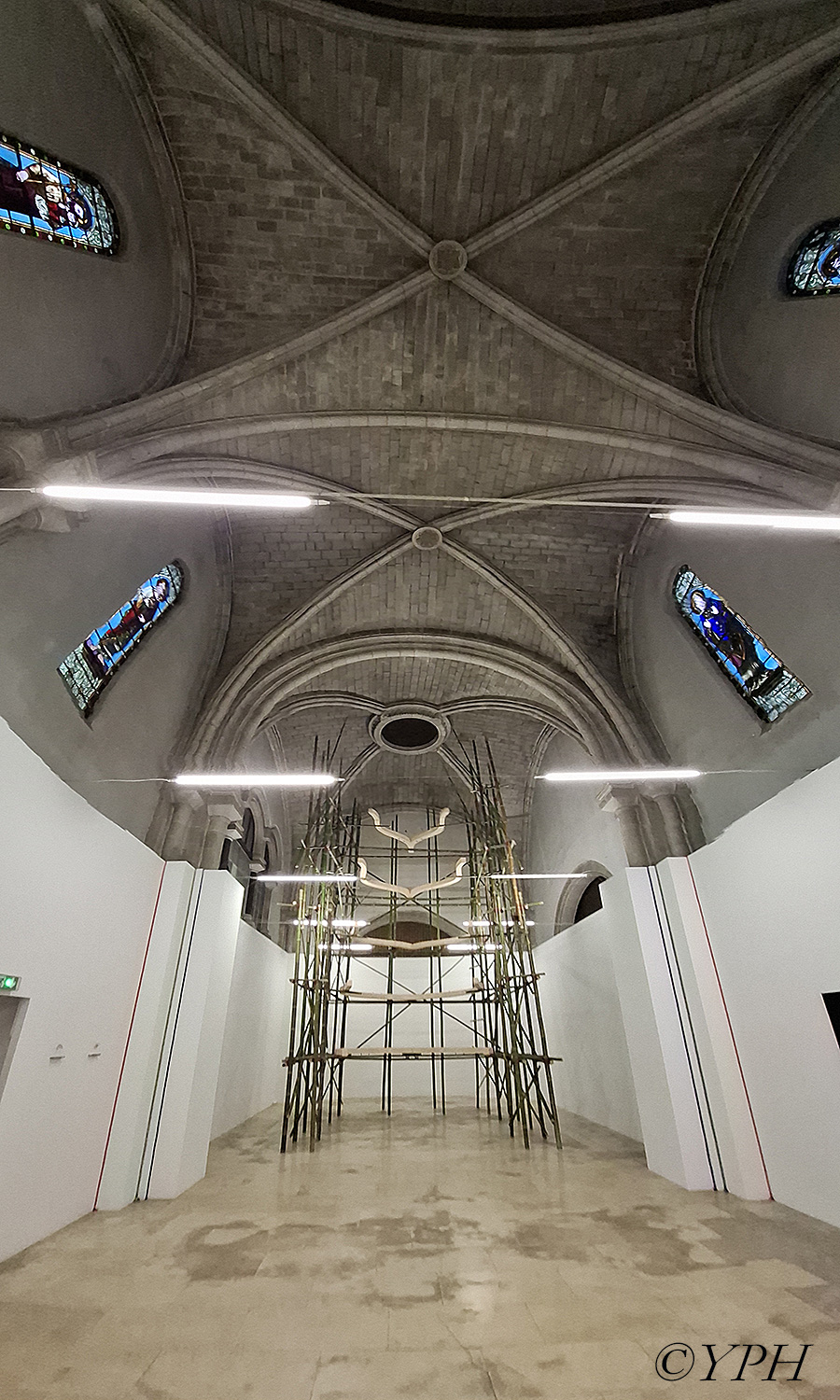 le Phare Le 17 février 2026 Répondre ruisseaux de la chinoise Shuling Liu (400x400x900cm); bambous, bois-des couples de l’Hermione, cordes et fils d’acier) – on dirait des cimiers de casques de samouraï?